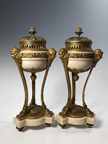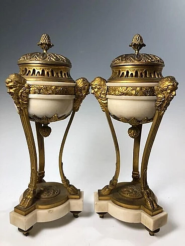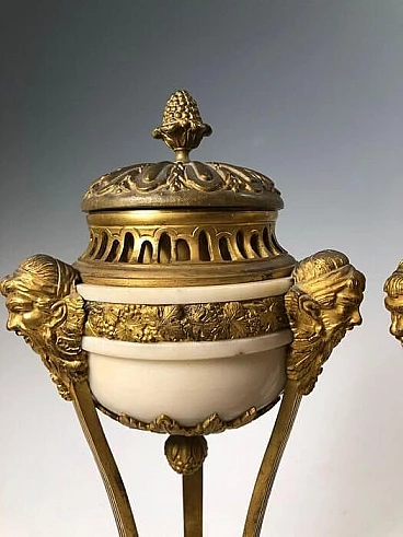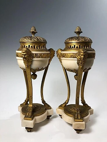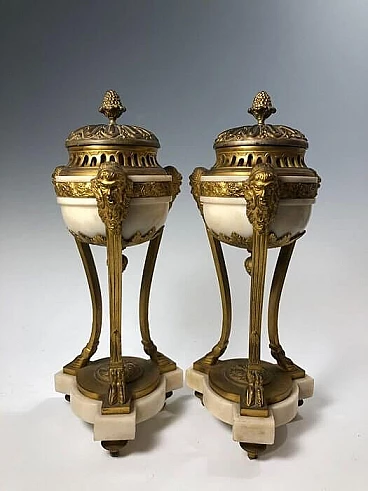 Pair of gilt bronze and white marble incense burners, 19th century
