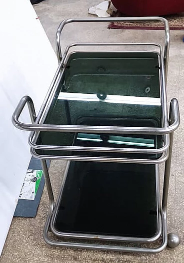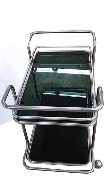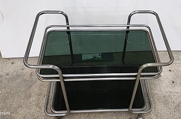 Trolley in smoked glass and chrome-plated metal, 1970s