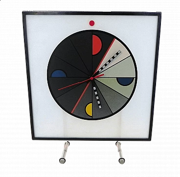 Acerbis table or wall clock, Morphos 1980s mod. Kloks by Kurt B of Banco design. Plexi feet can be removed to fix it on the wall. it works perfectly. only defect the red second hand a bit 'bent.