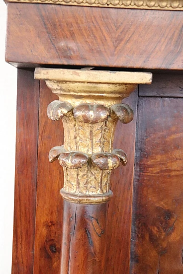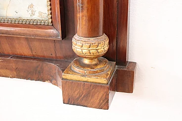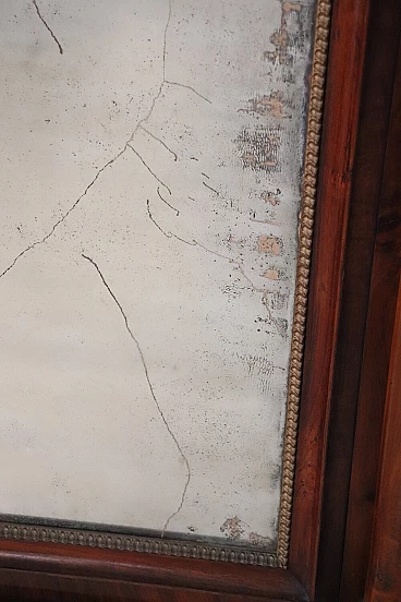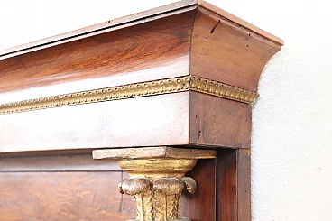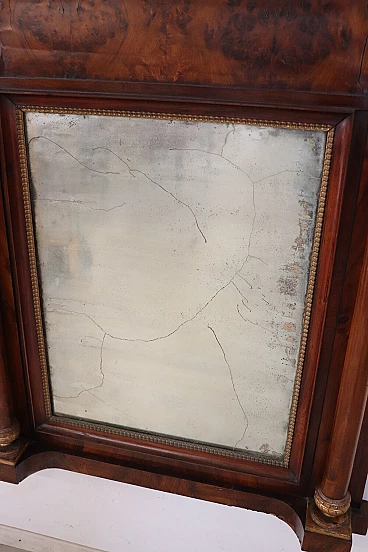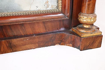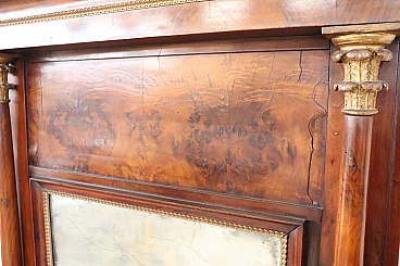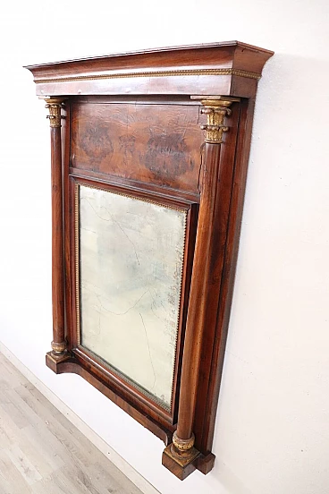 Refined antique mirror or full fireplace from the Empire period, very early years of the 19th century, developed in height, see dimensions. In precious walnut wood. Characterized by two full decorative columns on the sides enriched by gilded capitals. Original antique mercury mirror. Good old condition. We advise you to look at all the attached photos in detail. Proposal at an excellent negotiable price, we invite you to send us your purchase proposals and we will evaluate them with pleasure. Width 106 Depth 16 Height 140