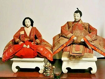 Pair of Japanese dolls of Emperor and Empress Hina Ningyo, late 19th century