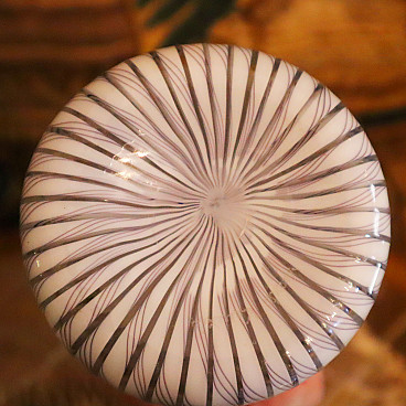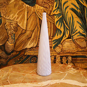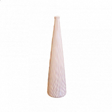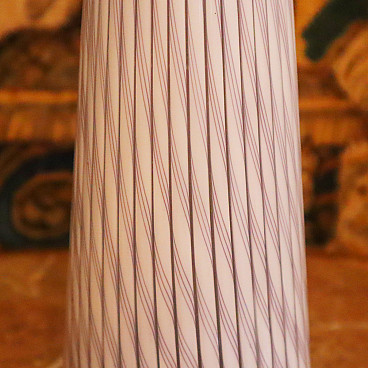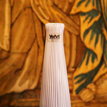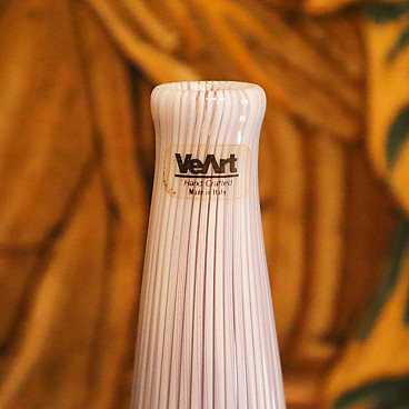 Venice Veart vase. Bottle-shaped vase with a truncated cone shape in Murano glass. White base with amethyst streaks. Signed under the base Veart Venezia. 1970s-1980s. Height 42 cm.