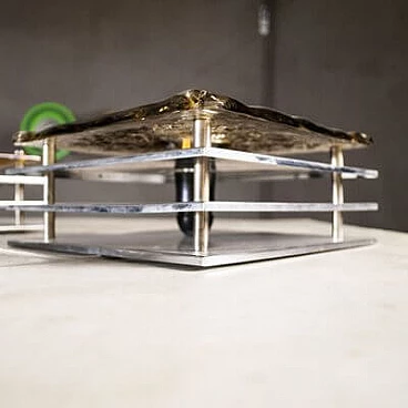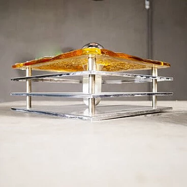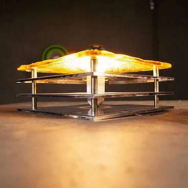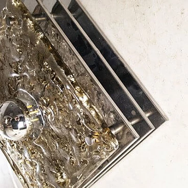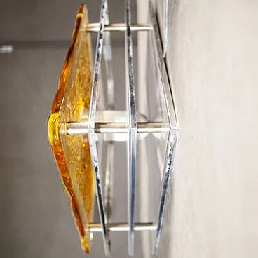 Pair of Mazzega wall lights in steel and amber glass, 1970s