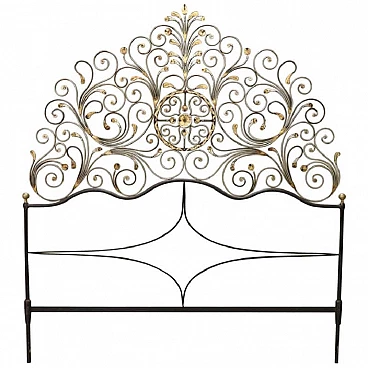 Headboard for Genoese peacock bed, in golden wrought iron