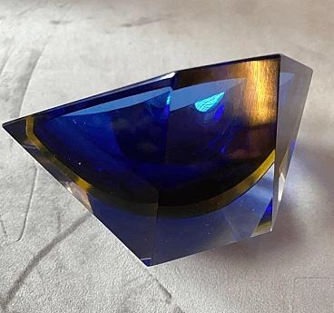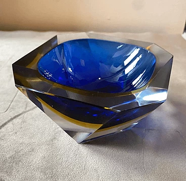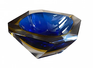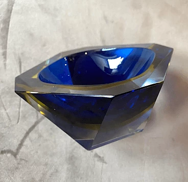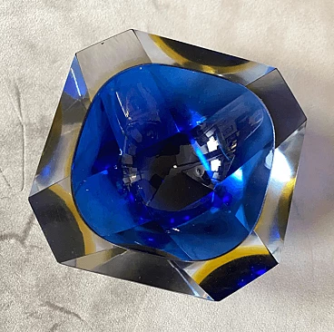 Blue and yellow sommerso Murano glass ashtray by Seguso, 1970s