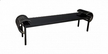 Coffee table in black lacquered wood, painted metal and plastic, designed by Emilio Nanni for Flyline Tina in the 90s.