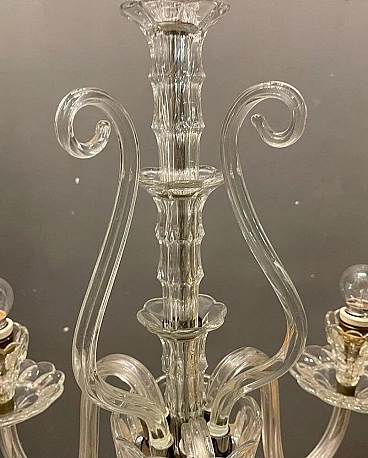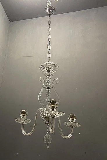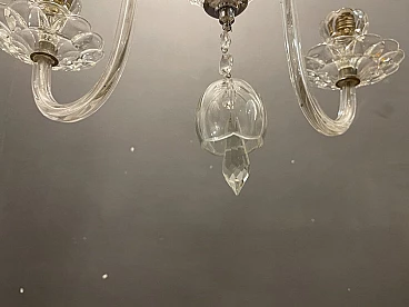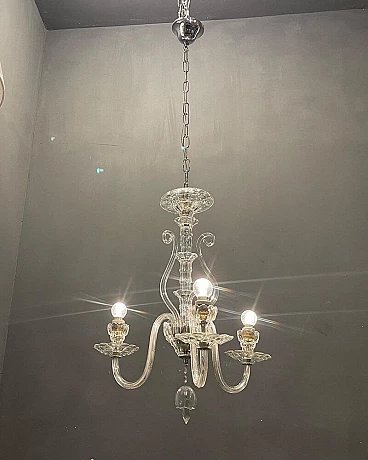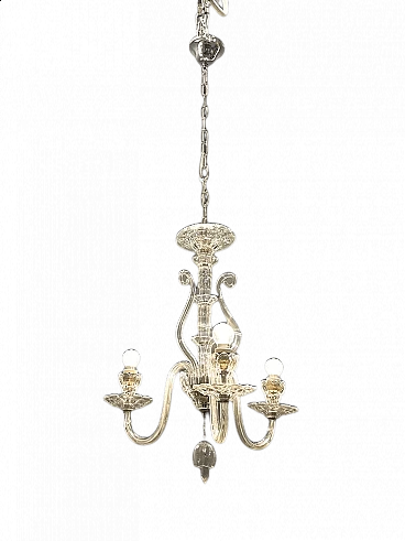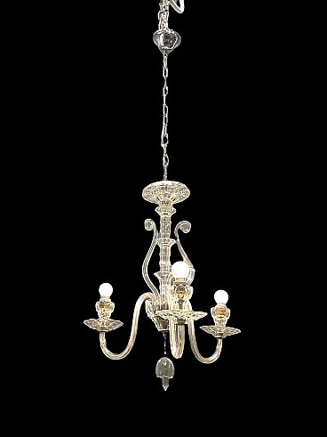 Venetian Murano glass chandelier from the 1950s. Features 3 lights. Requires E27 bulbs. New wiring installed, compatible with UK Europe USA. Height without chain and ceiling canopy 62 cm Height with chain and ceiling canopy 121 cm Width 50 cm