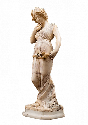 Description: antique alabaster sculpture depicting a woman holding a harp, second half of the 19th century. The woman is dressed in period clothing and her head is covered with ivy. Provenance: Florence 19th century. Condition: Very good state of preservation Measurements: 20x20 H57cm. Document: Certificate of Authenticity. Assistance: We are at your disposal for further clarifications or photographic details.