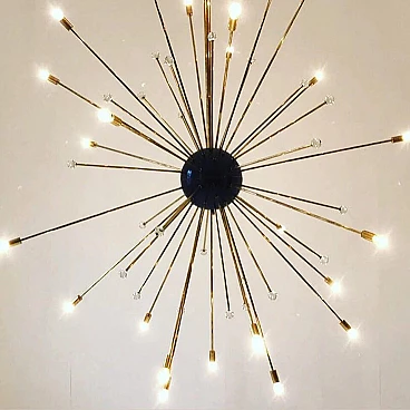 Sputnik chandelier in the style of Stilnovo in brass and metal, 70s