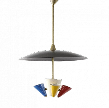 Chandelier in the style of Stilnovo in brass and metal, 60s