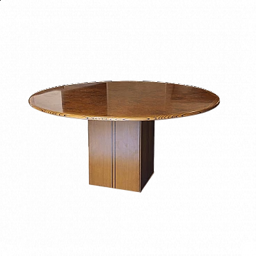 Artona round table by Afra & Tobia Scarpa from Maxalto. First edition, Italy 1970s; high quality table for the excellence of the materials used and for the workmanship in walnut and walnut burl, with brass fixings. Present inside concrete element with Maxalto production mark.