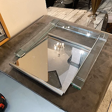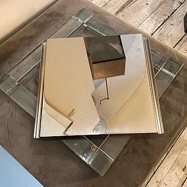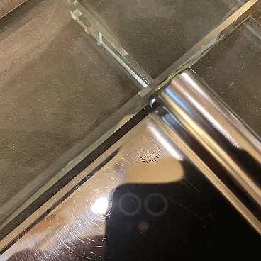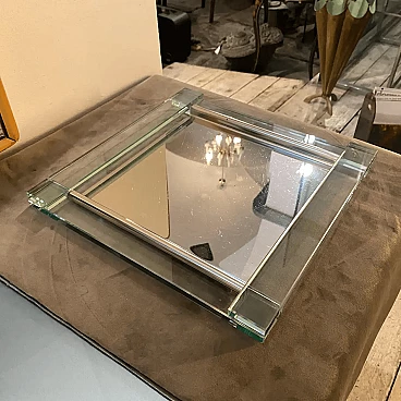 Tray in silver plated metal and Verde Nilo heavy glass, 80s