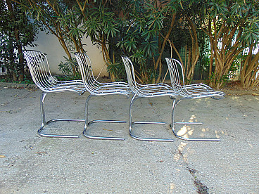 4 Chrome-plated tubular chairs by Gastone Rinaldi, 1960s