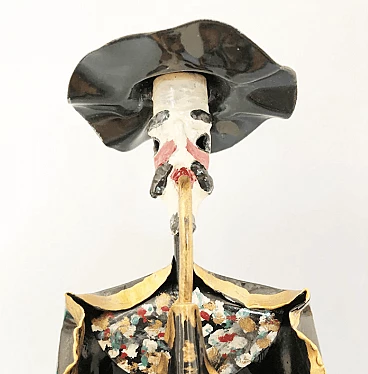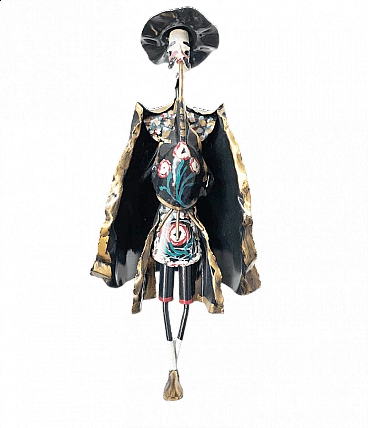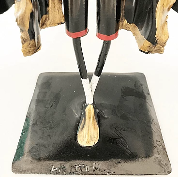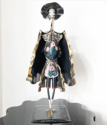Don Quixote by Giovanni Grittani, 1980s. It is a sculpture made of wrought and enamelled iron, then decorated by hand.