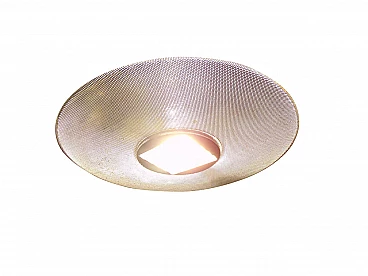 Halogen chandelier, 80's, Lamperti company, Maxi Theora model, in matt black lacquered aluminium, with satin-finished glass units.