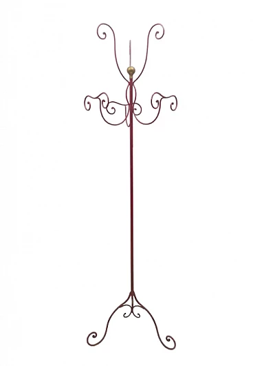 This coat rack and hat rack is made of brass and painted iron. The rust has not been removed to testify the authenticity of the piece.