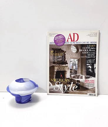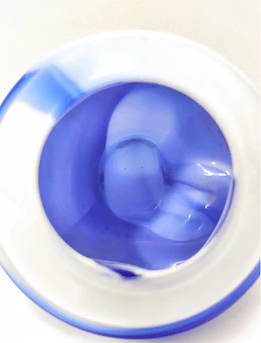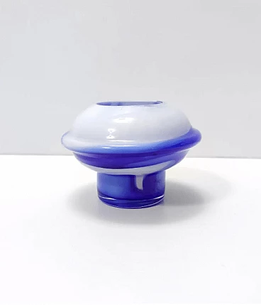 Onda by Carlo Moretti, 1970s. It is a vase made of white and blue coated Murano glass.