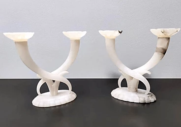 Pair of alabaster and onyx candelabra attributed to Tomaso Buzzi, 1940s