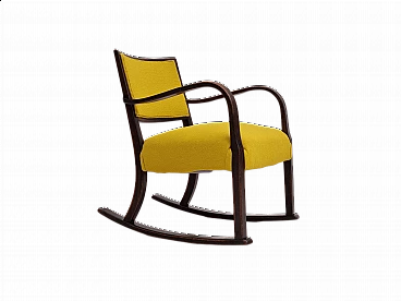 50s, Danish design by Fritz Hansen, renovated rocking chair, KVADRAT furniture wool