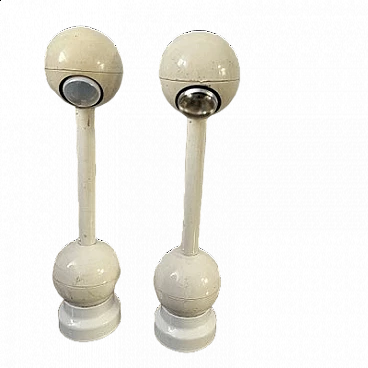 The two bodies of the metal lamps rest on cylindrical metal bases (not original) and are switched on / off by moving the lamp back and forth on their bases. The cable in this item may be genuine and may need to be replaced unless otherwise noted.