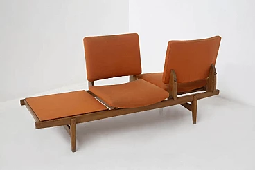 Bench in wood and fabric by Augusto Bozzi for Saporiti, 1950s