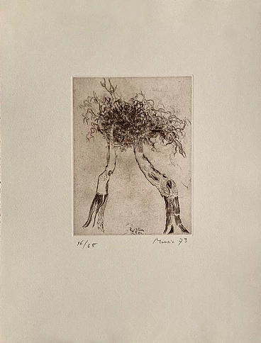 Zoran Mušič's Motif Général, homage to Caspar David Friedrich made in 1973. Etching on virgin paper, signed and numbered in pencil.