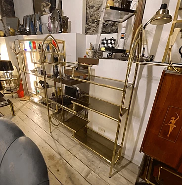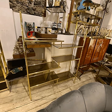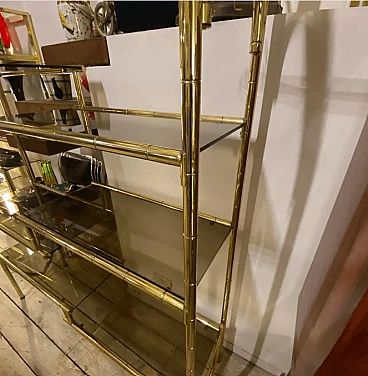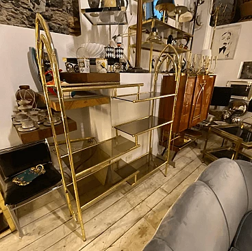 Brass and smoked glass bookcase, 1960s