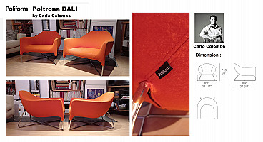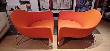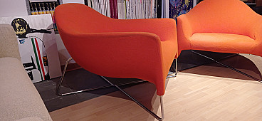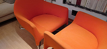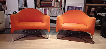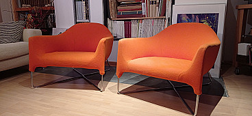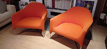 Pair of Bali armchairs by Carlo Colombo in orange fabric, 2000s