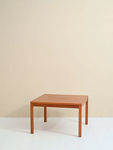 Teak coffee table of Scandinavian manufacture. A comfortable table top with timeless beauty. Essential but also studied in detail, this piece of furniture will add a touch of charm to your room.