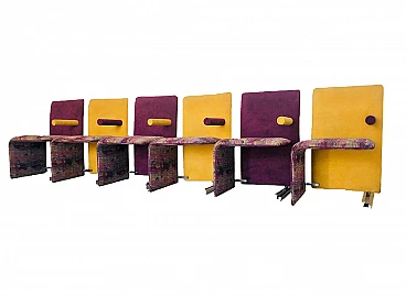 Set 6 chairs "Point" arch. Maurizio Salvato for Saporiti. Produced in 1985 and presented at the Salone del Mobile. Metal structure with coloured fabric covering. Object in good condition with signs of time, as shown in the photo. Seat height 46 cm