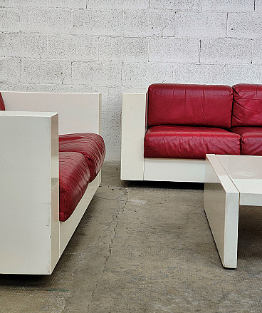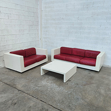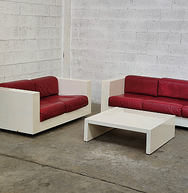 Pair of Saratoga sofas and coffee table by Lella and Massimo Vignelli for Saratoga, 1964