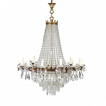 Balloon with 18 light chandelier with brass and gilt bronze frame composed of glass necklaces, pendants, and bobeches. To be electrified.