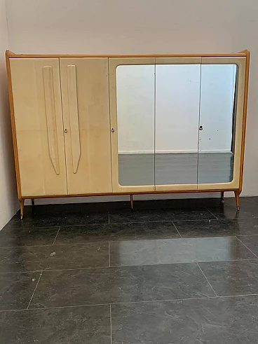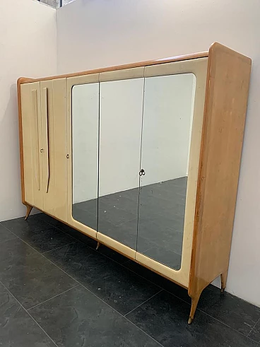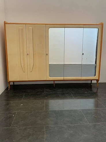 Maple, parchment and mirror wardrobe attributed to Silvio Cavatorta, 1950s