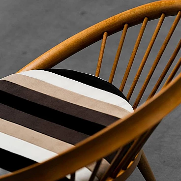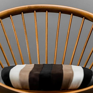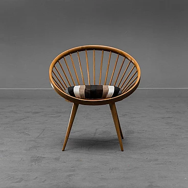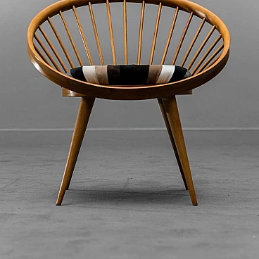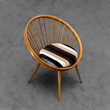 Circular wooden armchair with velvet cushion, 1960s