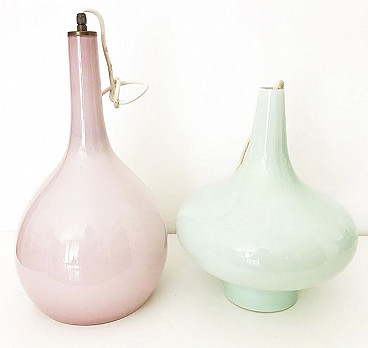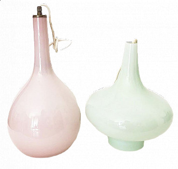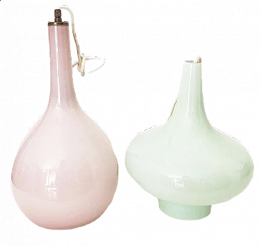 Pair of pink and green pendant lamps by Vignelli for Venini, 1960s