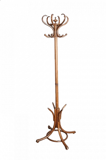 Thonet coat rack in curved beech wood, 1940s. Unique design and line, fully restored. Ready to place in any room. Measurements: height 192 cm; base maximum width 75 cm.