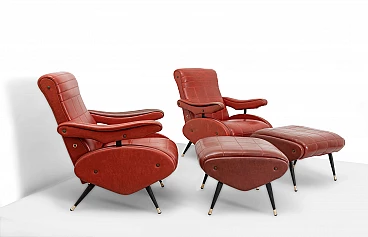Pair of Oscar armchairs with pouf by Nello Pini for Novarredo, 1960s