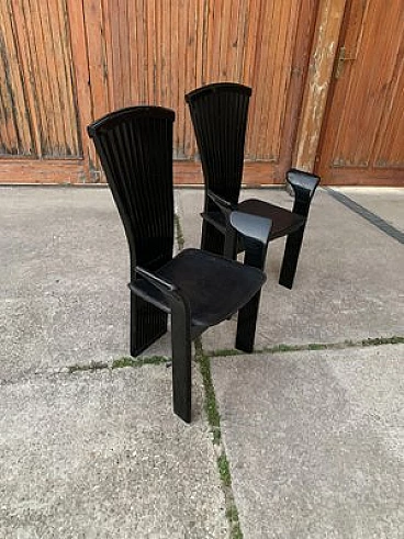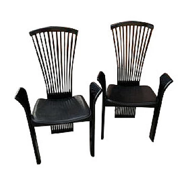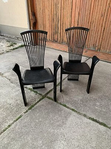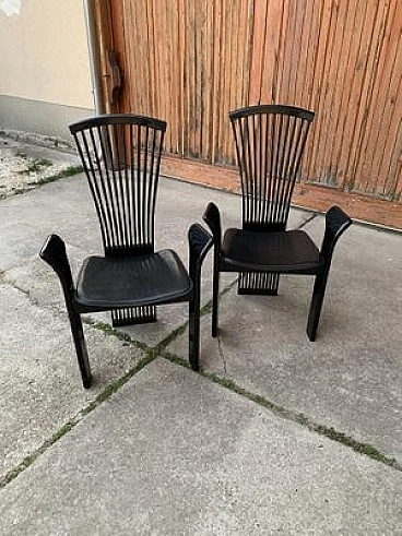 Pair of dining chairs in lacquered and leather by Pietro Costantini, 1980s