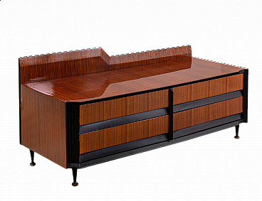 Small chest of drawers veneered in rosewood and brass feet. Dassi Italia, Prod. ca. 1960