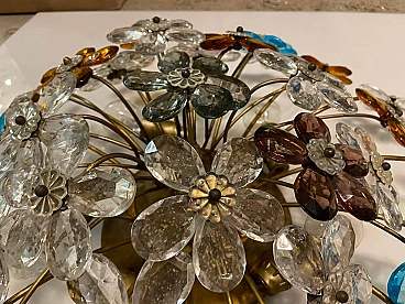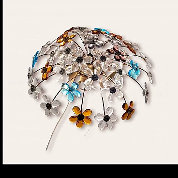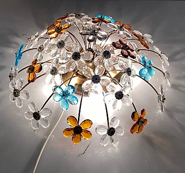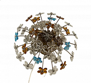 Flower-shaped recessed lamp made of Murano glass, 1970s. Features 5 lights and requires E14 bulbs. New wiring installed compatible with UK Europe USA.