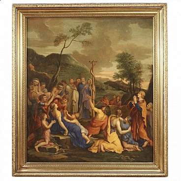 Oil on canvas Moses and the bronze serpent with carved frame, 17th century