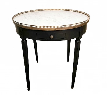 Louis XVI-style Bouillotte coffee table in black ebonized wood and Carrara marble, late 20th century