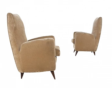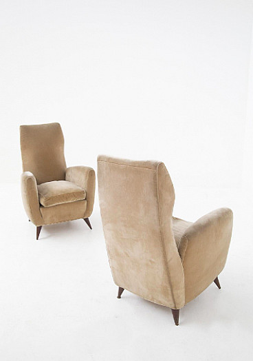 Pair of armchairs in velvet attributed to Gio Ponti for Isa, 1950s