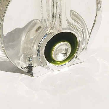 Another way, however, is to shape an object through a mould, thus obtaining more elaborate shapes that a glassblower would not be able to achieve. Such is the case with this massive transparent vase, which features an elegant bevelled decoration on the front.