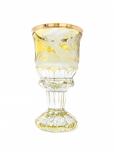 Decorative vase made of Biedermeier acid-etched crystal. This is an elegant and almost "regal" vase, transparent and gilded. It dates from the 19th century.