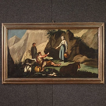Oil on canvas depicting a pastoral scene with frame, 18th century