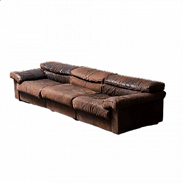 Erasmo modular sofa by Afra and Tobia Scarpa for B&B, 1970s. The furniture features brown leather upholstery and plastic feet. Good condition, shows signs of time.