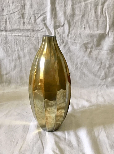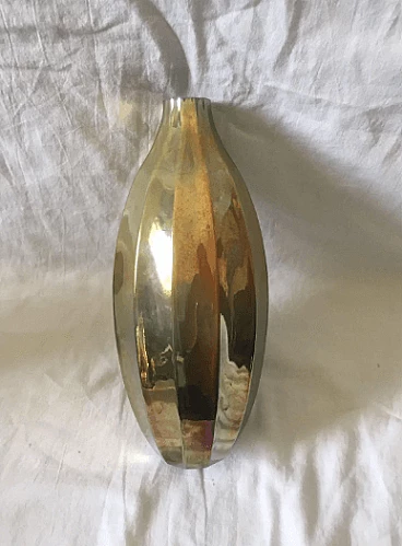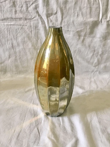 Modernist vase from the 1980s in iridescent and translucent glass with shades of silver, made in Italy. Elegant object with an attractive shape.