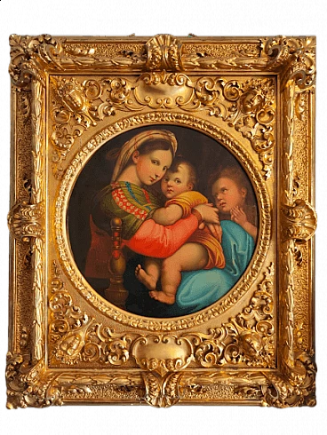 Oil on canvas Madonna of the Chair with gilded frame, 19th century