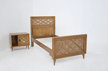 Single bed and wooden nightstand designed by Paolo Buffa in the 1950s, of fine italian workmanship.